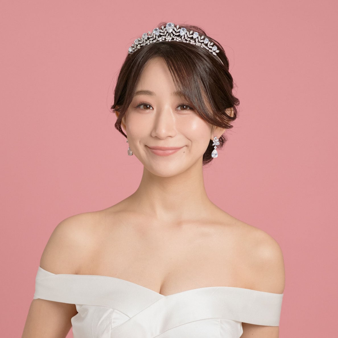 ※ティアラはコームがついていないタイプとなっておりますので、ティアラの左右にヘアピンやUピンを通して着用くださいませ。