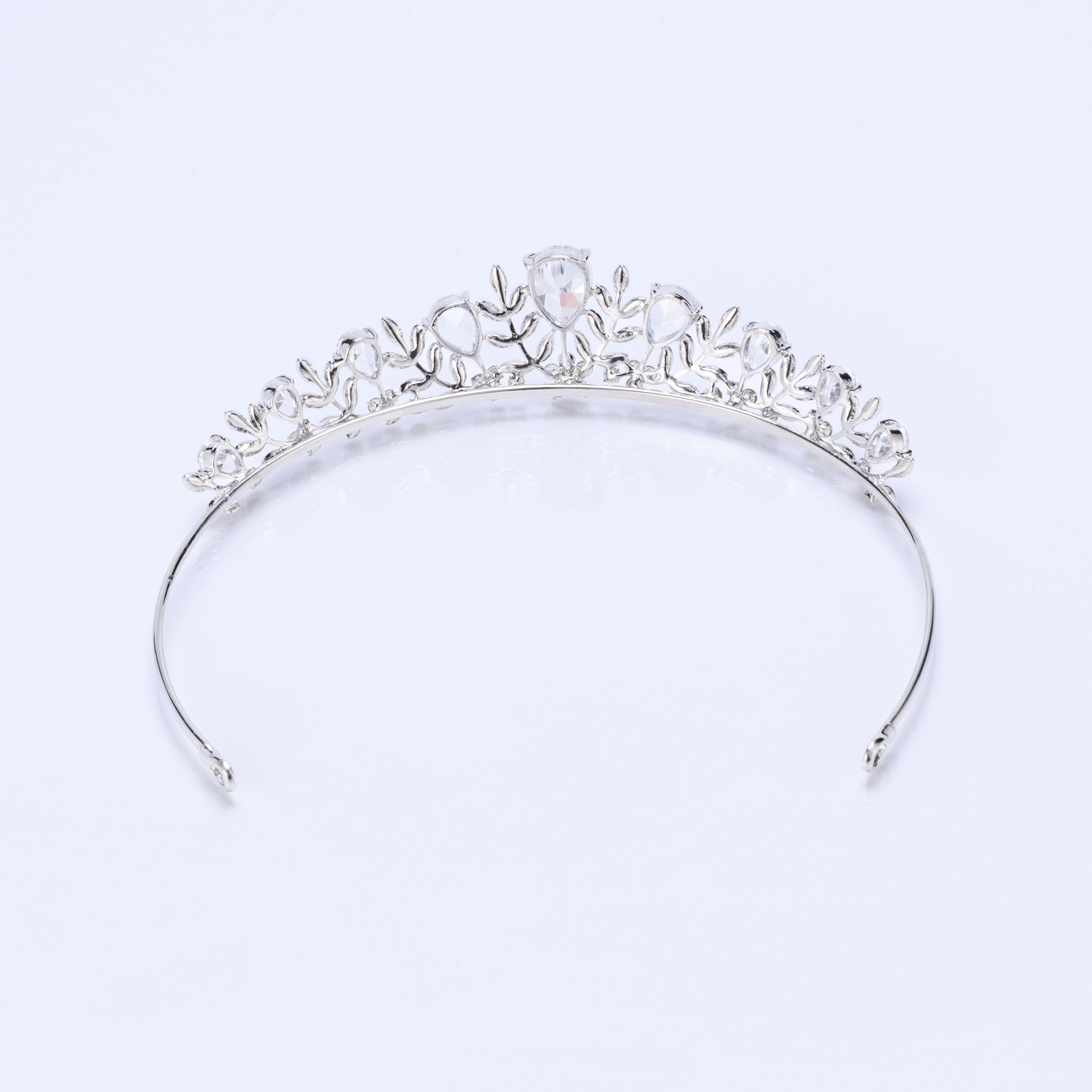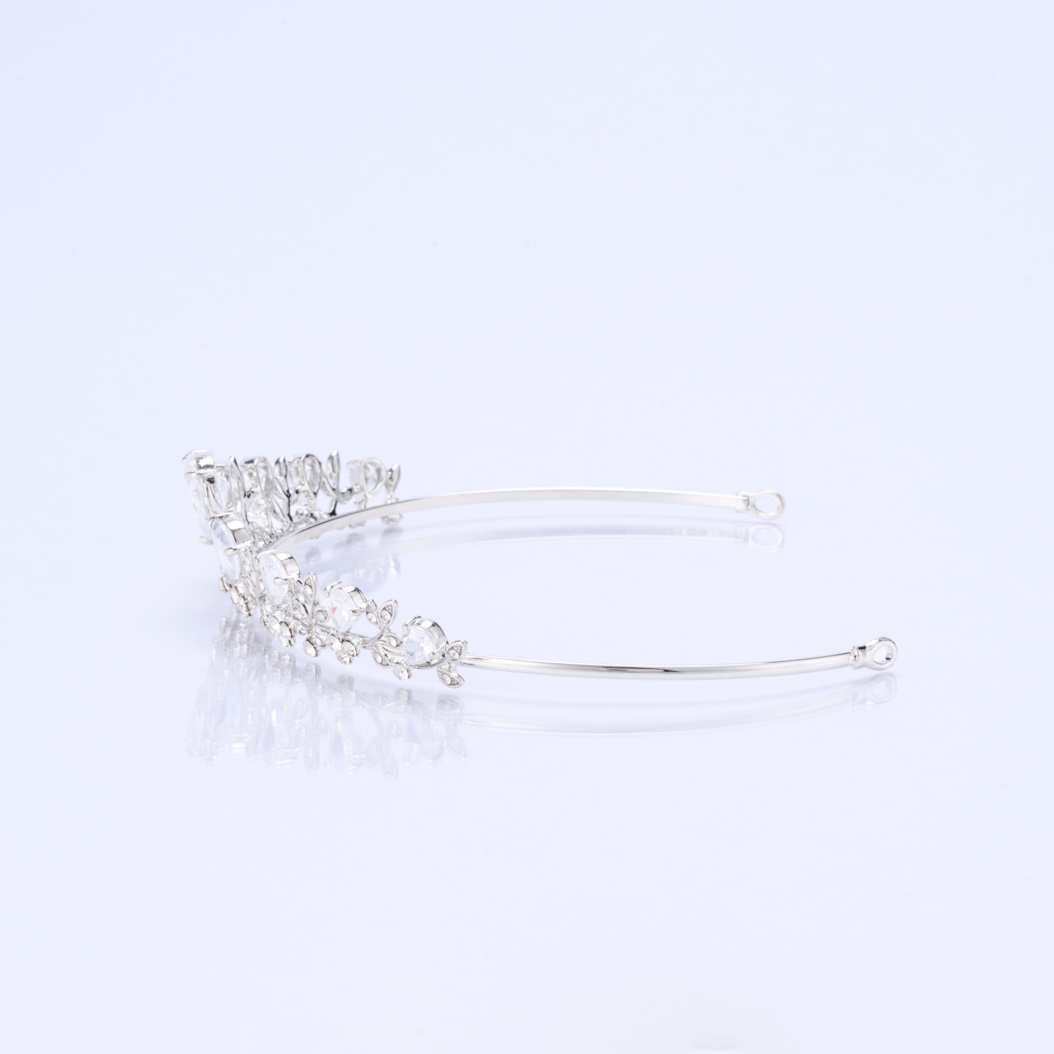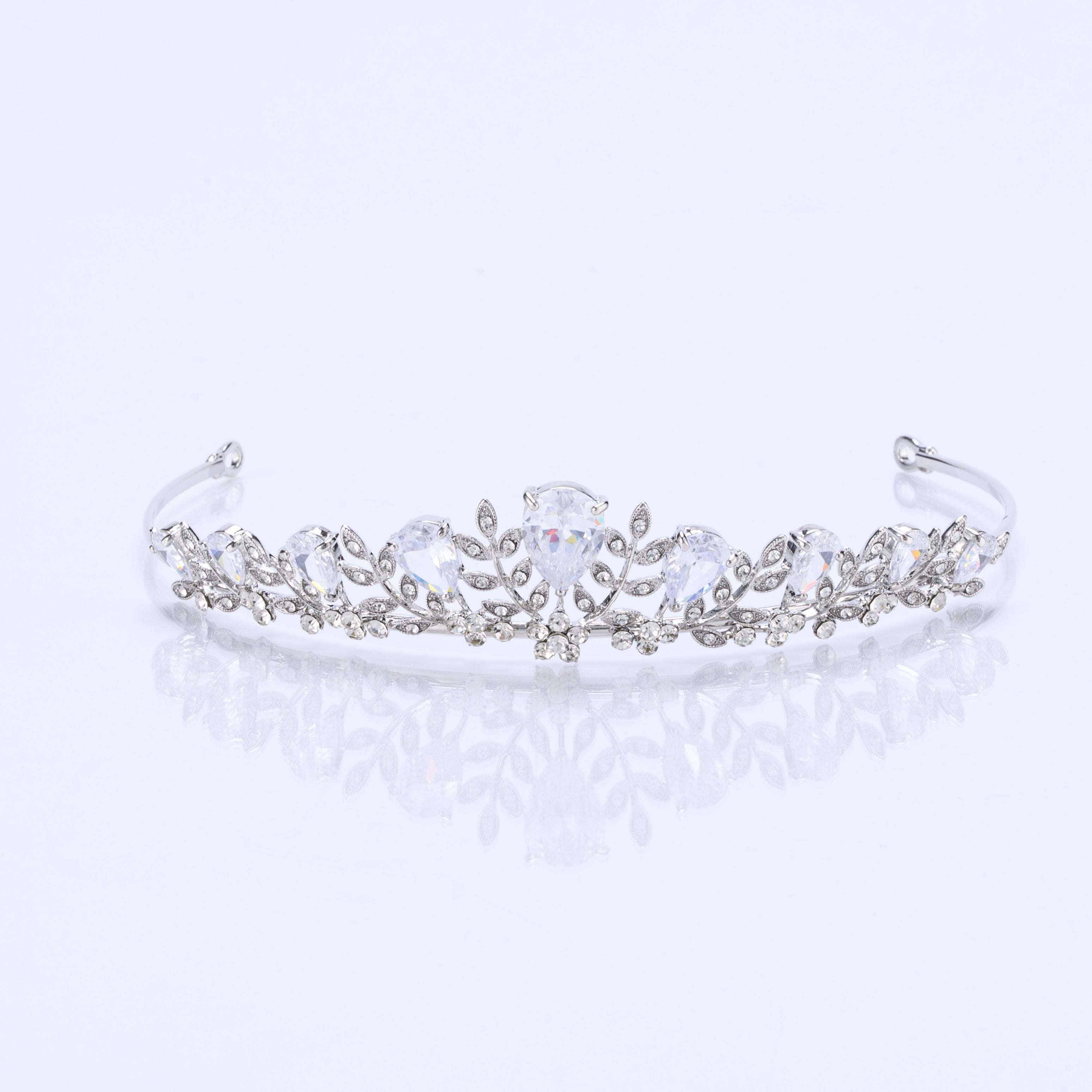 大粒のキュービックジルコニアが贅沢に使用された、動くたびにキラキラと輝くエレガントなティアラです。