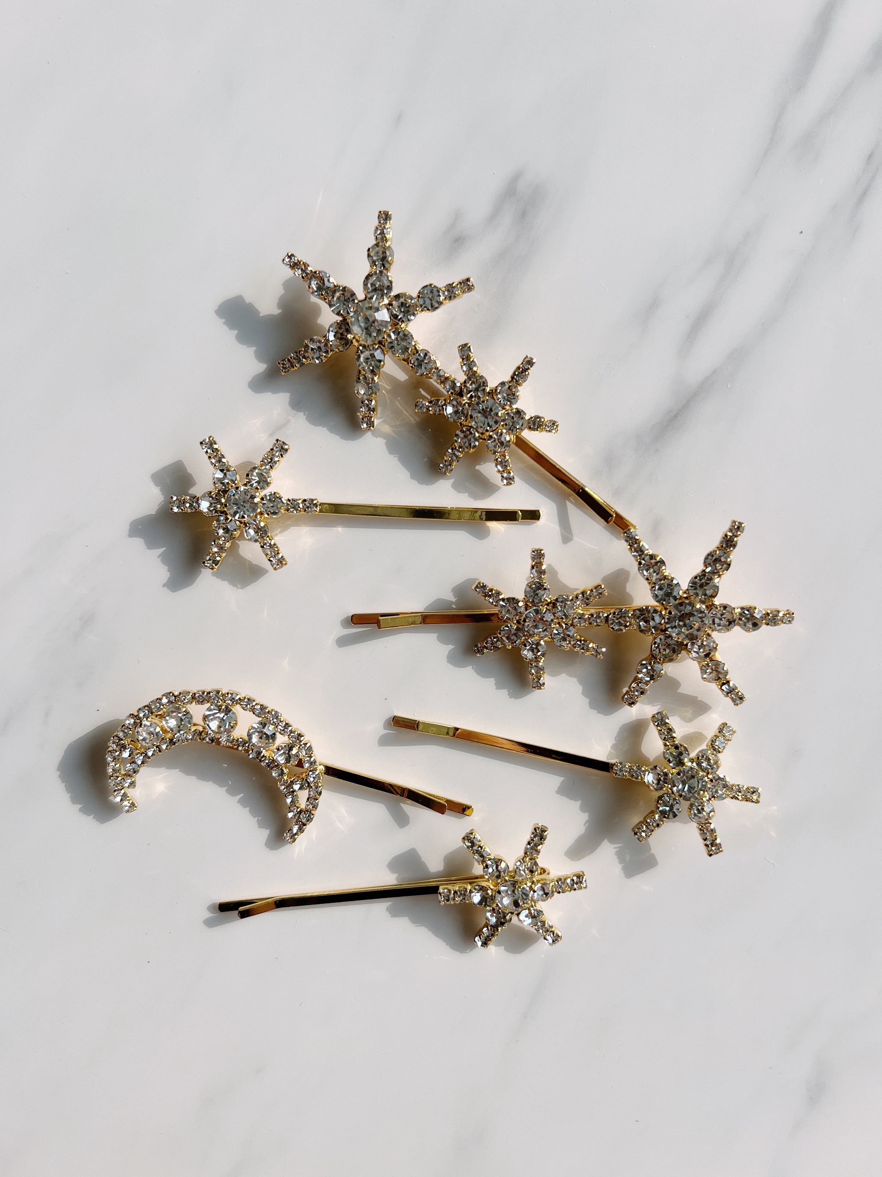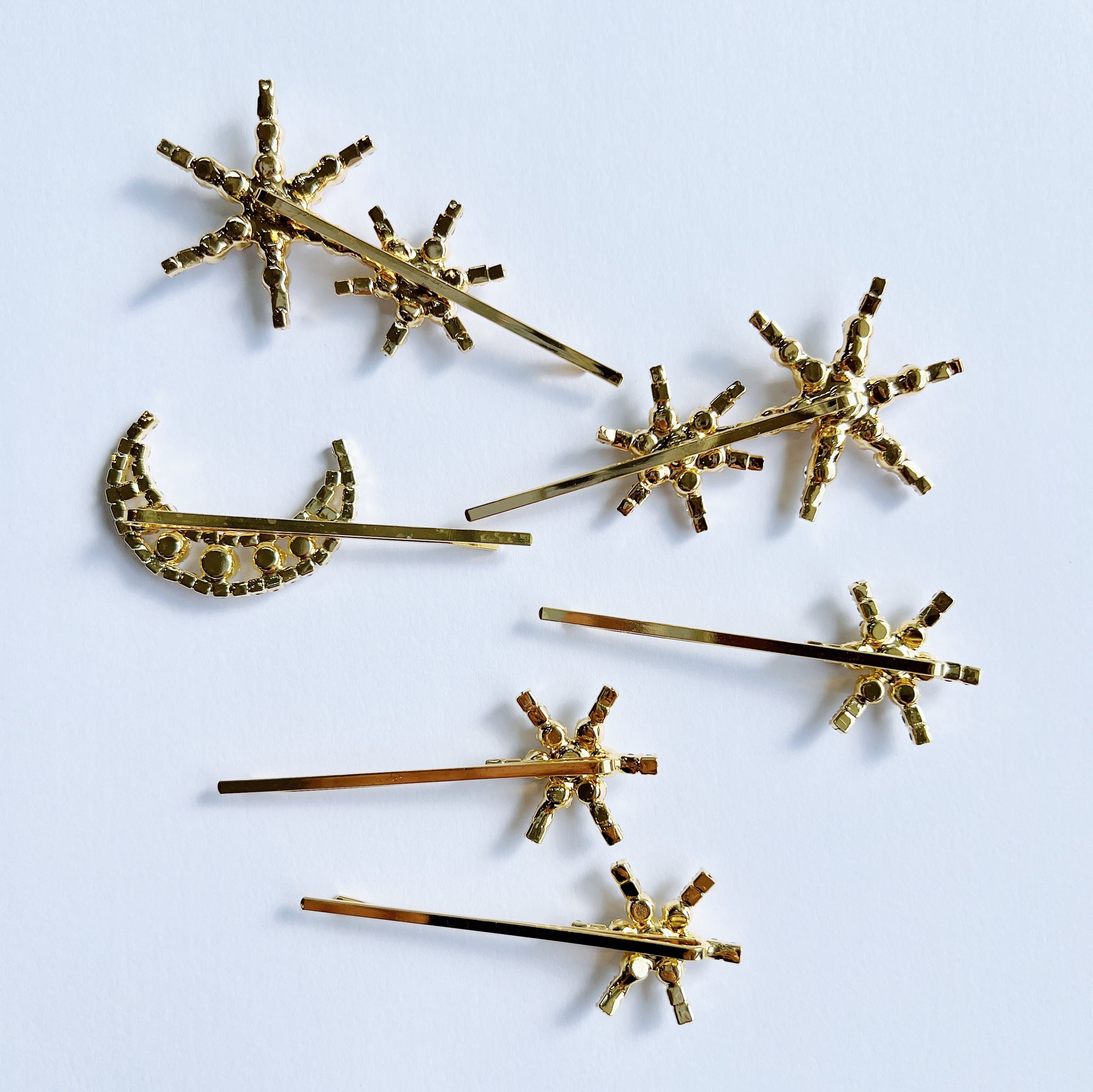 本商品は、星モチーフのヘアピン大2本、小3本、月モチーフのヘアピン1本のセットです。