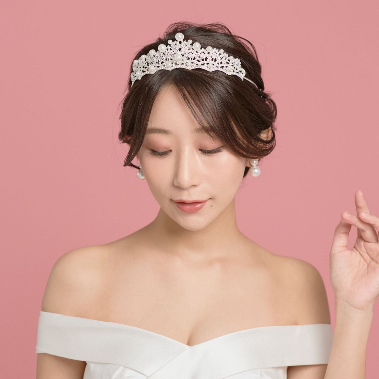贅沢に施されたパールが特徴的なティアラは、プリンセスのような華やかさ!