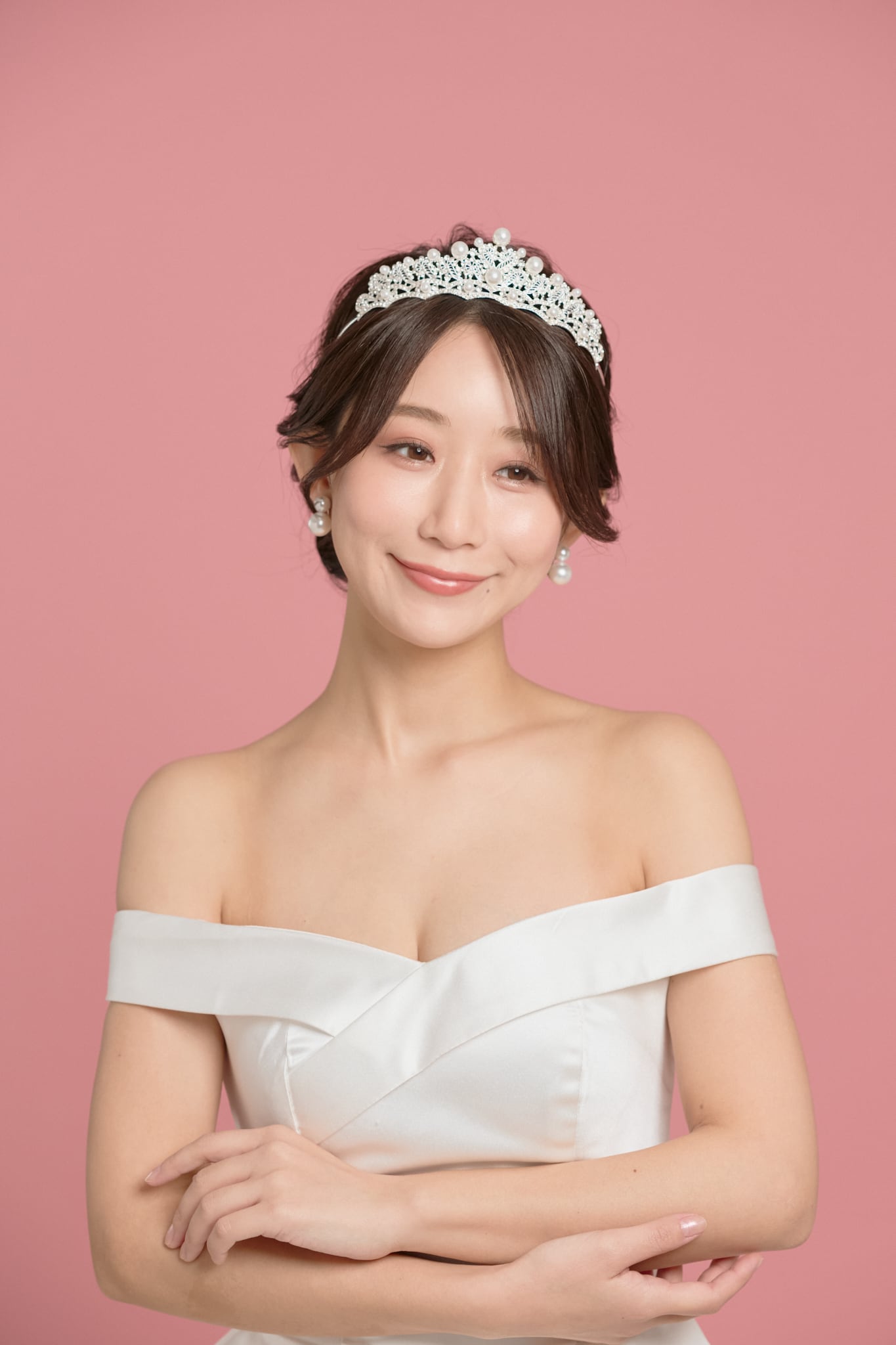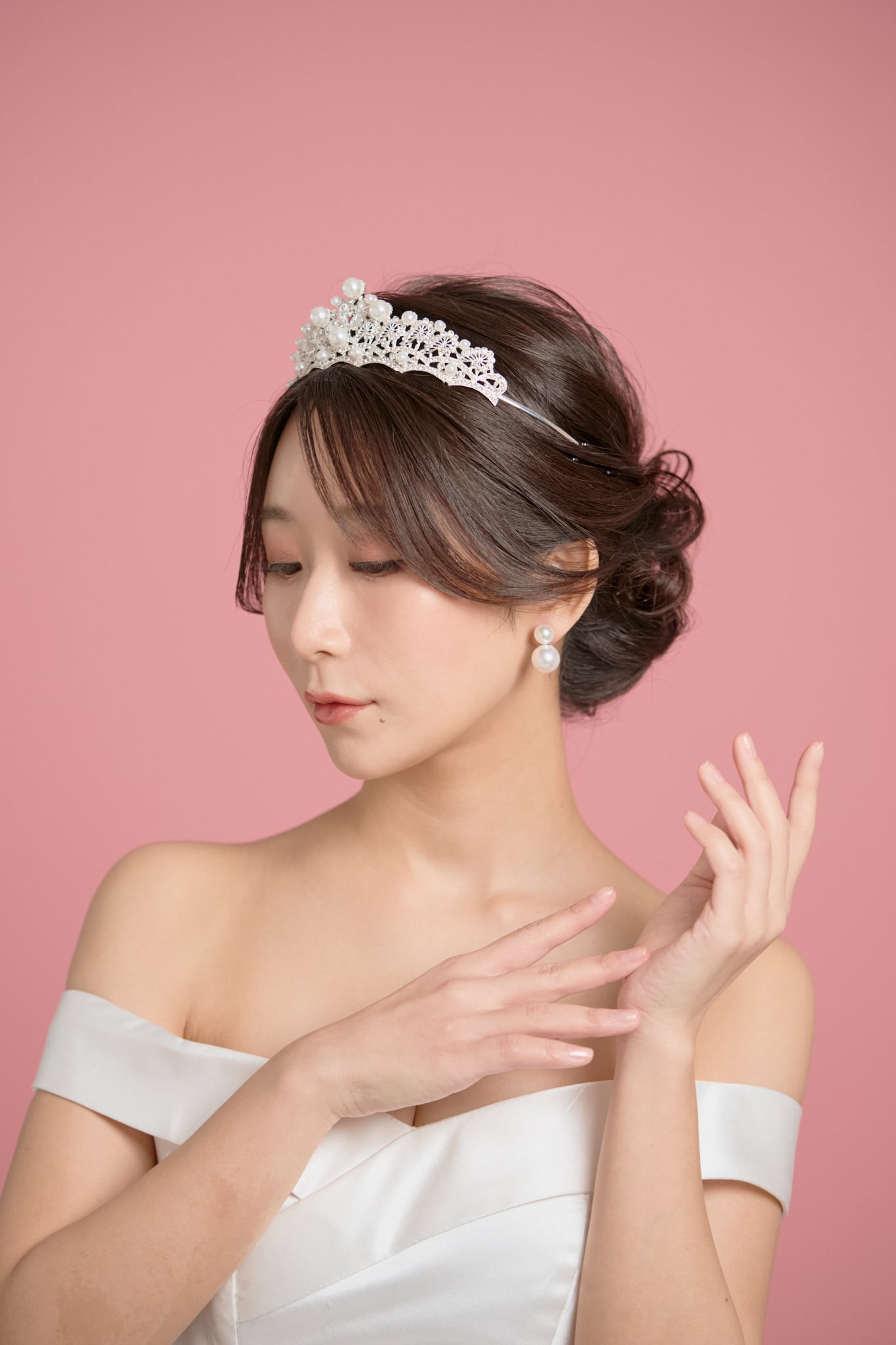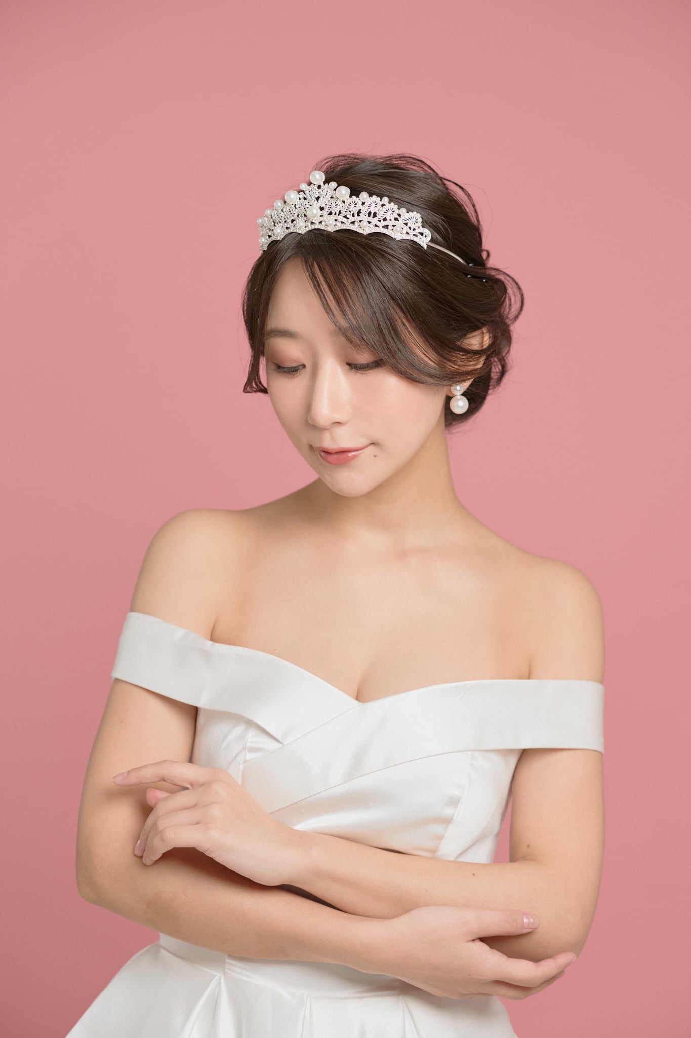 ※ティアラはコームがついていないタイプとなっておりますので、ティアラの左右にヘアピンやUピンを通して着用いただきます。