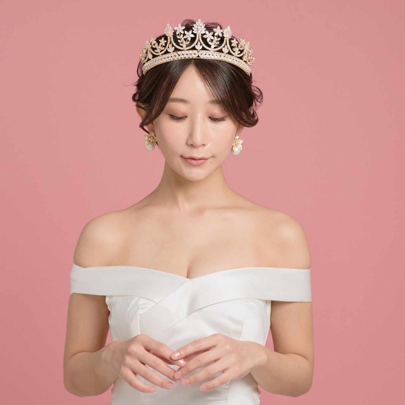 大振りなティアラとの相性も良く、こちらなどをご参考くださいませ。
