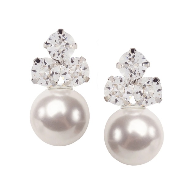 立体的なフラワーモチーフとスワロフスキーパールがポイントとなったピアスは、