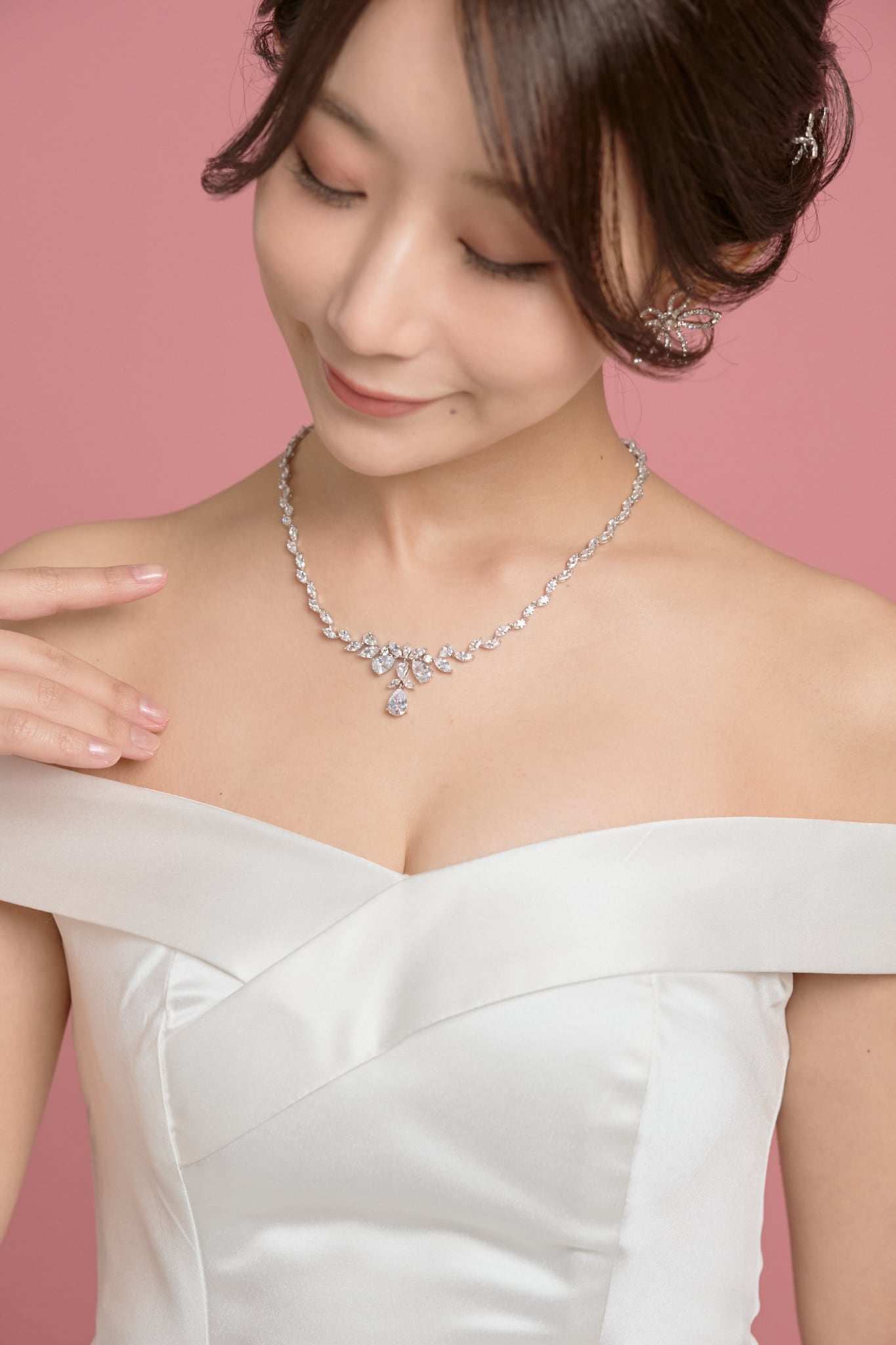 キュービックジルコニアのアイテムは多く取り揃えておりますので、ネックレスと相性のよいティアラをご紹介します。